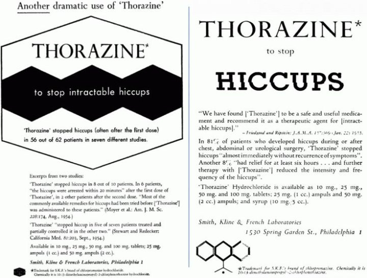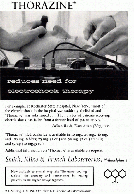 Isso sem falar que os próprios efeitos do Thorazine (nome comercial da clorpromazina nos EUA) já eram muito questionáveis em si: desde intensas dores físicas até tornar pacientes em “zumbis” afetivamente, a lista de efeitos colaterais é imensa. A tal ponto que veio à tona na década de 1970 que o governo stalinista da URSS utilizada o Thorazine como método de tortura (o que evidentemente também ocorria, com esse medicamento e outros métodos como a ECT – eletro-convulso terapia – em todos os países que adotavam o modelo manicomial de tratamento). Outros efeitos gravíssimos ocorrem, como degeneração cognitiva e hiperssensibilização à psicose.